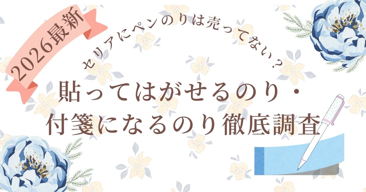 貼ってはがせるペン型のりがセリアなどで見つからない場合でも、100均や市販品をうまく代用することで、近い使い方ができます。
